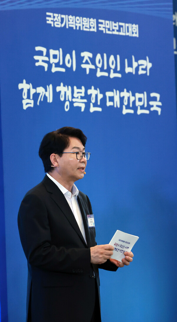 국정기획위원회가 13일 대국민 보고대회에서 발표한 이재명 정부의 국정과제는 5대 분야 123개. 지난 6월 16일 발족해 58일 동안 국민 의견을 수렴하고 전문가 검증·토론을 거쳐 확정한 과제들이다. 외교안보분과는 5대 분야 가운데 가장 적은 15개 과제를 보고했다.