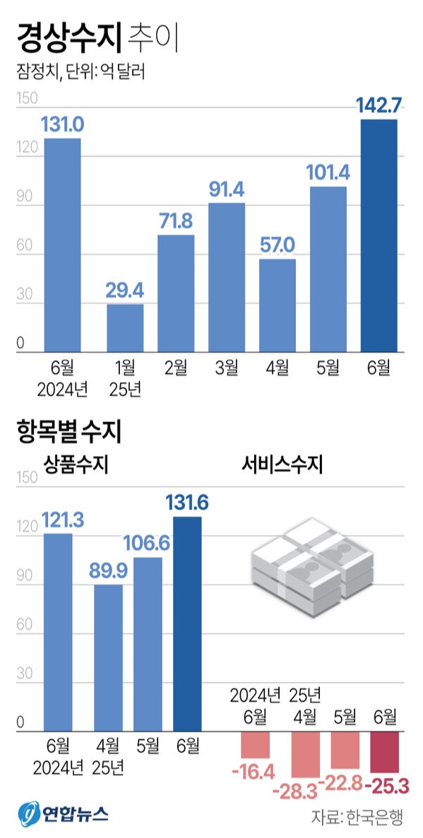 6월 경상수지 사상 최대인 142억 7000만 달러 흑자 기록