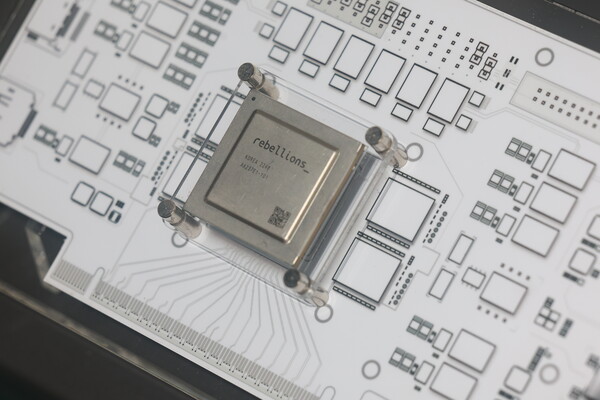 7일 경기도 국립과천과학관 미래상상SF관에 전시된 리벨리온사의 AI 반도체 ''아톰'(ATOM)이 탑재된 가상 보드. '아톰'(ATOM) 디지털 데이터를 저장 관리하기 위해 설치된 데이터센터를 위한 AI반도체다. 연합뉴스