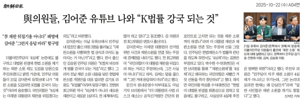 나아가 조선일보는 해당 기사가 게재된 4면 하단에 <與의원들, 김어준 유튜브 나와 “K법률 강국 되는 것”> 기사를 배치해 “민주당 의원들이 21일 김어준씨 유튜브에 나가 “재판 소원을 도입하면 K법률 강국이 되는 것”이라며 옹호했다고 보도했다. “김어준씨는 이재명 대통령의 선거법 위반 사건과 재판소원을 연결 짓는 주장에 경계령을 내리기도 했다”라고도 했다. 입법 추진이 정파적이라는 인상을 부각한 편집으로 읽힌다.