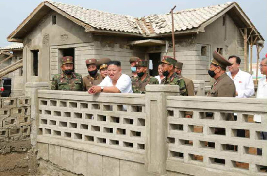 | |  | | | ▲ 김정은 국무위원장이 한달여만에 다시 황해북도 은파군 대청리 수해복구지역을 찾았다. [캡쳐사진-노동신문] |