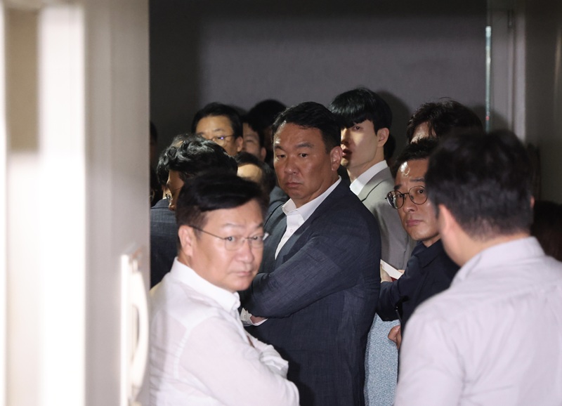 18일 오후 김건희 특검의 당원 명부 압수수색이 진행중인 서울 여의도 국민의힘 당원 명부 데이터베이스 관리 업체 사무실에서 의원들이 배석해 있다. 2025.09.18. ⓒ뉴시스