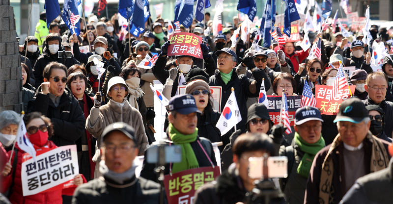 극우단체들의 혐중 시위는 지난 탄핵 심판 과정에서 윤석열 전 대통령이 근거 없는 '중국 선거 개입 음모론'을 내세우면서 본격화됐다. 특히 김민전 전 국민의힘 최고위원 등 보수정치인들이 나서서 혐중 감정을 부추기기도 했다. 극우단체들의 혐중 감정은 보수세력의 정치적 이익을 위해 만들어진 혐오 감정인 셈이다.