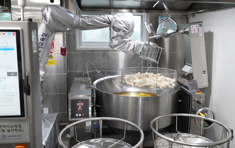 부산교육청이 지난 12일 학교급식실에 도입한 '다기능 조리로봇' ⓒ부산교육청