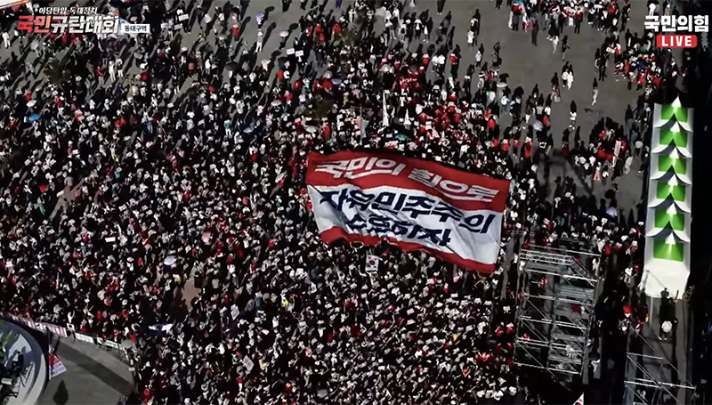 김 최고위원은 “자유를 지키기 위한 극단주의는 악이 아니라고 했다”며 “대한민국 지키기 위해 기꺼이 극단을 택하자”고 외쳤다. 그는 “이재명! 당선무효! 내려와라!”라고 구호도 외쳤다.