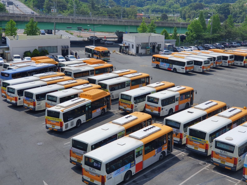 울산 울주군 율리공영차고지에 배차를 앞둔 시내버스가 줄지어 서 있다. ⓒ뉴시스